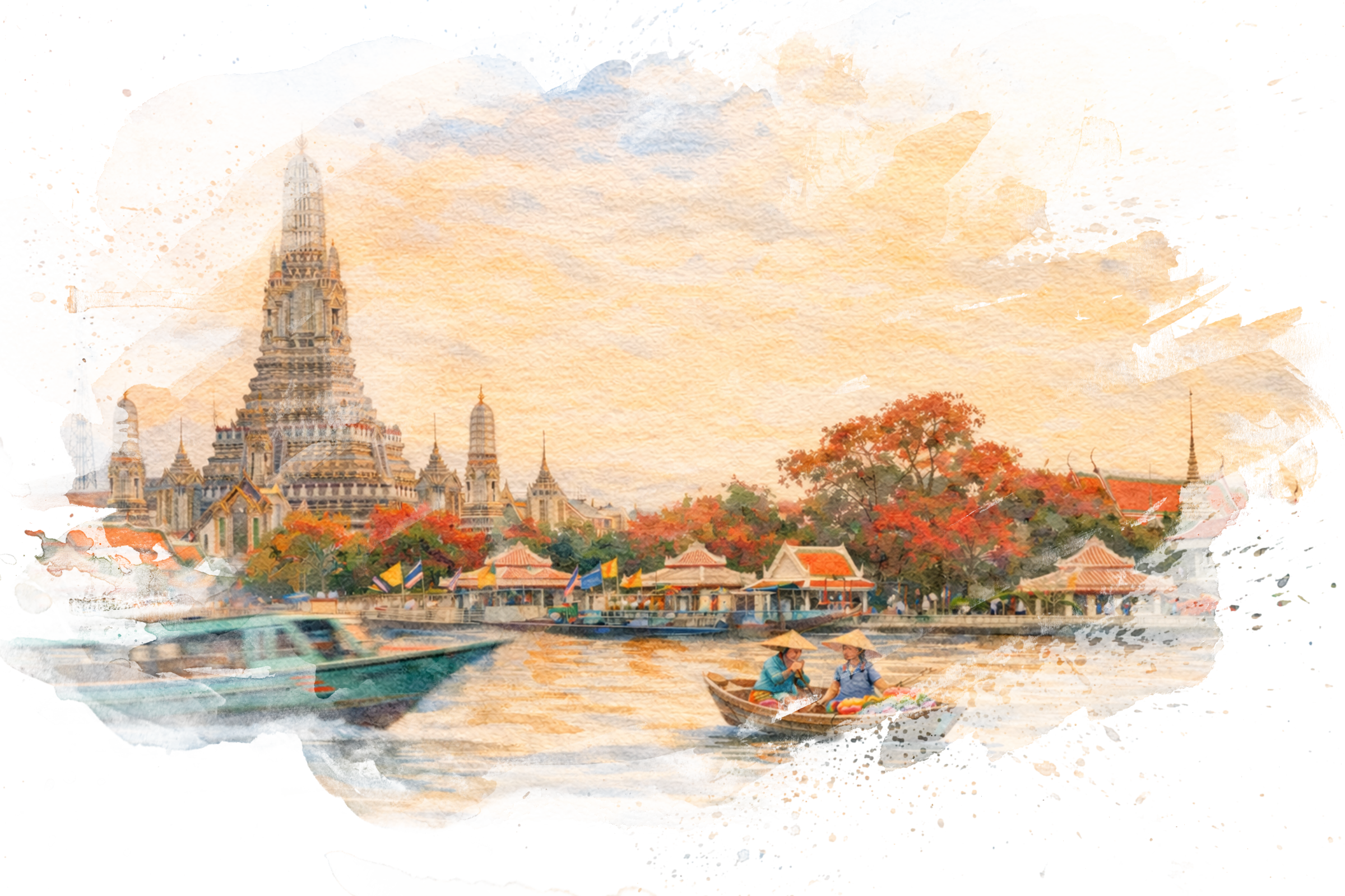 This first chapter is about grounding. Time to recover from travel, reconnect with your surroundings, and ease into Thailand through culture, wellness, and everyday life. From royal temples and long-tail boats to spa rituals, markets, and evenings by the river, Bangkok sets the tone for the journey ahead—vibrant, immersive, and unmistakably alive.